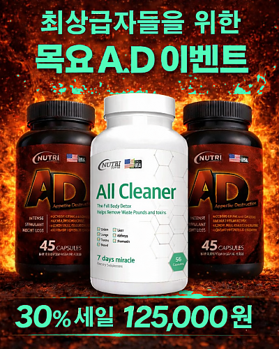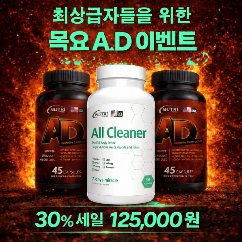 최상급자들을 위한 세트상품, 올클리너! 디톡스제품으로 몸예 쌓여진 내성과 독소를 제거하고, A.D제품으로 강한 식욕을 잡는다~진정한 효과를 경험해보실것입니다.